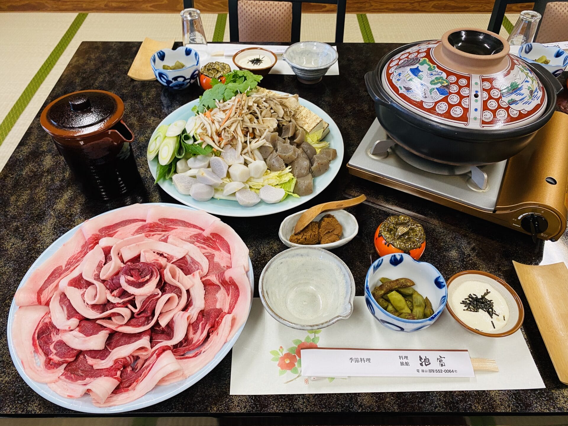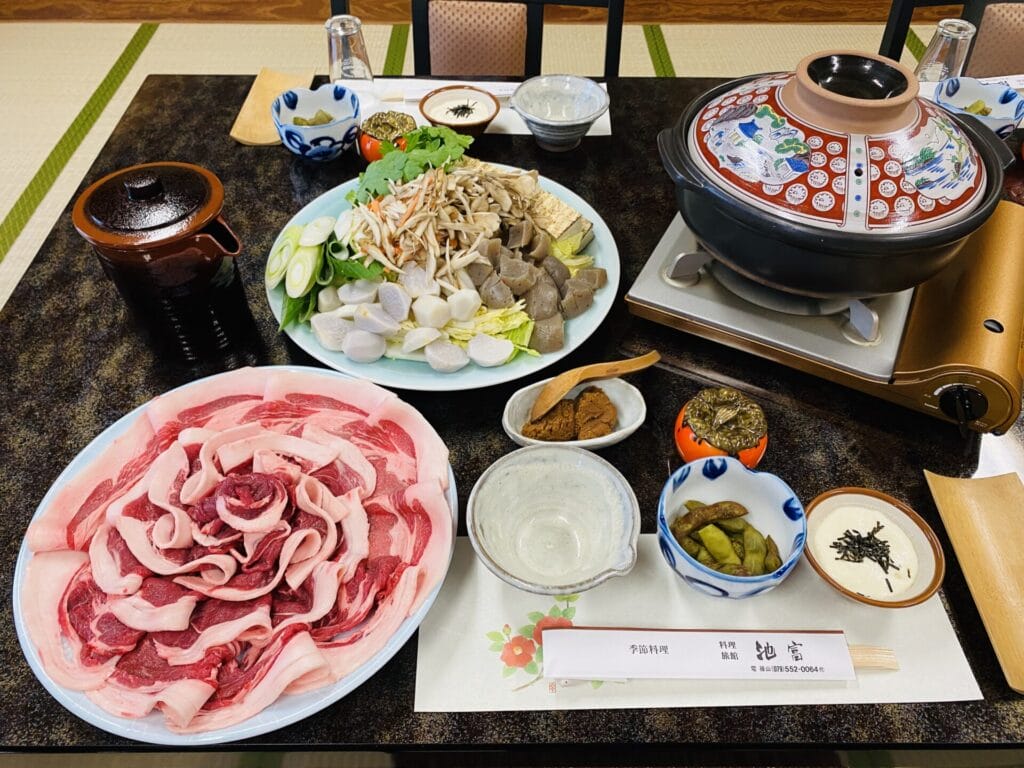 2年熟成させた自家製の白味噌を使った特製ぼたん鍋や丹波鶏の水炊きなど、数々の名物が揃っています。